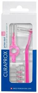 Набор для гигиенического ухода Prime Start: 5 ершиков CPS 08 с держателями UHS 409 и UHS 470 (розовый). для ежедневной гигиены полости рта. для взрослых и детей от 5 лет. для профилактики кариеса, гингивита, пародонтита. для максимально эффективного удаления зубного налёта. для пациентов с пломбами, коронками, мостами, имплантатами. при аллергических реакциях на стоматологический металл.Мягкая и густая щетина. Стержень ершика выполнен из плетеной проволоки – запатентованной хирургической стали Cural для долговечности и надежности. Это придает ершикам дополнительную прочность и делает их гипоаллергенными, так как сплав не содержит никель. Ёршики обеспечивают полное удаление зубного налета в межзубных промежутках и не травмируют десневой сосочек.Диаметр щетинок: 0,8 мм.Держатели: подходит для всех держателей Curaprox. Удобная система смены ершиков – «click» – с помощью этой системы очень легко заменить использованный ершик и вставить новый в любой держатель.