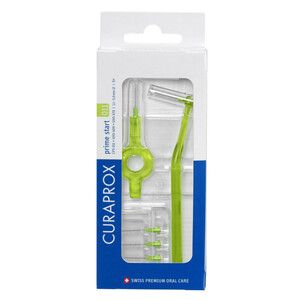 Набор для гигиенического ухода Prime Start: 5 ершиков CPS 011 с держателями UHS 409 и UHS 470 (зелёный). для ежедневной гигиены полости рта для взрослых и детей от 5 лет для профилактики кариеса, гингивита, пародонтита для максимально эффективного удаления зубного налёта для пациентов с большими межзубными промежутками для вторичной профилактики на открытых межзубных пространствах для пациентов с пломбами, коронками, мостами, имплантатами при аллергических реакциях на стоматологический металлМягкая и густая щетина. Стержень ершика выполнен из плетеной проволоки – запатентованной хирургической стали Cural для долговечности и надежности. Это придает ершикам дополнительную прочность и делает их гипоаллергенными, так как сплав не содержит никель. Ёршики обеспечивают полное удаление зубного налета в межзубных промежутках и не травмируют десневой сосочек.Диаметр щетинок: 0,11 мм.Держатели: подходит для всех держателей curaprox. Удобная система смены ершиков – «click» – с помощью этой системы очень легко заменить использованный ершик и вставить новый в любой держатель.