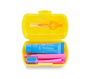 Дорожный набор BE YOU в комплектации:Зубная паста Be you orange со вкусом персика и абрикоса 10 млЗубная щётка CS5460Межзубные ёршики CPS prime 07, CPS prime 09Держатель UHS 409Синий боксРекомендована зубная паста:для профилактики кариесадля повышения мотивации чистки зубов у детей с 3-х лет и старшедля осветления эмалидля снижения чувствительности эмалидля укрепления зубной эмалипосле профессиональной гигиеныпосле стоматологических хирургических вмешательств (удаление зубов, имплантация, операции со слизистой и пр)Рекомендована зубная щётка:для ежедневной гигиены полости ртадля взрослых и подростков от 13 летбеременным и кормящим женщинампри чувствительной эмалипри чувствительности десенпри кровоточивости десендля максимально эффективного удаления зубного налётапациентам, имеющим флюороз зубовпациентам, имеющим поражение зубной эмали (эрозия, гипоплазия, гиперплазия, клиновидный дефект)Рекомендованы межзубные ёршики:для ежедневной гигиены полости ртадля взрослых и детей от 5 летбеременным и кормящим женщинампри чувствительной эмалипри чувствительности десендля первичной профилактики гингивитадля первичной профилактики пародонтитадля первичной профилактики кариеса на проксимальных поверхностях зубовдля максимально эффективного удаления зубного налётадля людей с аллергиейдля пациентов с большими межзубными промежутками для вторичной профилактики на открытых межзубных пространствахдля пациентов с пломбамидля пациентов коронкамидля пациентов с мостамидля особенно стойкого налёта Преимущества зубной пасты: осветляющая зубная паста для взрослых и детей с 3-х лет со вкусом грейпфрута и бергамота комплексного действия.Активные ингредиенты зубной пасты Be you способствуют:реминерализации зубной эмали,уменьшает болевую чувствительность,мягко осветляет эмаль зубов за счет,предотвращает рост бактерий, вызывающих кариес,успокаивает и восстанавливает слизистую полости ртаподдерживает слизистую после любого стоматологического лечения,борется с патогенными бактериями в полости рта,удерживает слизистые оболочки во влажном состоянии,бережно очищает эмальПреимущества зубной щетки: щетинки из полиэстрового волокна плотнее и мягче, чем нейлон. Впитывают на 60% меньше влаги и снижают риск размножения бактерий на поверхности зубной щётки. Эффективно очищают поверхность эмали, тщательно разрушают и удаляют зубной налёт, особенно в зоне десневой борозды. Маленькая и компактная головка зубной щетки, имеющая легкий наклон, обеспечивает правильное положение щетки в пришеечной зоне.Диаметр щетинок: 0,10 мм.Количество щетинок: 5460. Мягкая и густая щетина.Преимущества межзубных ершиков: мягкая и густая щетина. Стержень ершика выполнен из плетеной проволоки – запатентованной хирургической стали CURAL для долговечности и надежности. Это придает ершикам дополнительную прочность и делает их гипоаллергенными, так как сплав не содержит никель. Ёршики обеспечивают полное удаление зубного налета в межзубных промежутках и не травмируют десневой сосочек. Диаметр щетинок: 0,7 мм и 0,9 мм. Держатель UHS 409 – состоит из гигиенически безопасного полипропилена, нескользящего пластика, универсальный с системой «click».Преимущества межзубных ершиков:для пациентов с большими межзубными промежутками для вторичной профилактики на открытых межзубных п