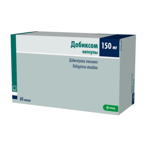 Показания к применениюПрофилактика венозных тромбоэмболий у больных после ортопедических операций; профилактика инсульта, системных тромбоэмболий и снижение сердечно-сосудистой смертности у пациентов с фибрилляцией предсердий.Применение при беременности и кормлении грудьюДанные о применении дабигатрана этексилата при беременности отсутствуют. Потенциальный риск у человека неизвестен.В экспериментальных исследованиях не установлено неблагоприятного воздействия на фертильность или постнатальное развитие новорожденных.Женщинам репродуктивного возраста следует применять надежные методы контрацепции с тем, чтобы исключить возможность наступления беременности при лечении дабигатраном этексилатом. При наступлении беременности применение дабигатрана этексилата не рекомендуется, за исключением случаев, когда ожидаемая польза лечения превышает возможный риск.При необходимости применения дабигатрана этексилата в период грудного вскармливания, в связи с отсутствием клинических данных, грудное вскармливание рекомендуется прекратить (в качестве меры предосторожности).ПротивопоказанияПочечная недостаточность тяжелой степени (КК менее 30 мл/мин); активное клинически значимое кровотечение, геморрагический диатез, спонтанное или фармакологически индуцированное нарушение гемостаза; поражение органов в результате клинически значимого кровотечения, включая геморрагический инсульт в течение предыдущих 6 мес до начала терапии; одновременное назначение кетоконазола для системного применения; нарушения функции печени и заболевания печени, которые могут повлиять на выживаемость; детский и подростковый возраст до 18 лет; повышенная чувствительность к дабигатрану или дабигатрану этексилату.Состав Дабигатрана этексилат 150 мг