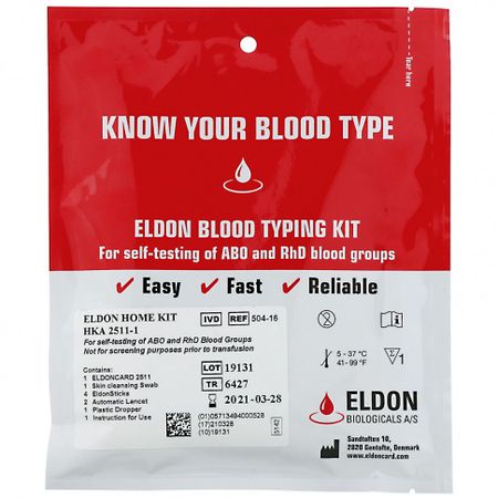 Узнайте свой тип кровиДля самостоятельного тестирования группы крови по системе ABO и резус-фактораЛегкий, быстрый, надежный5 — 37 °C, 41 — 99 °FEldon Biological A/SВ упаковке:Карточный анализатор Eldoncard 2511Ватная палочкаПалочки EldonSticksАвтоматический скарификаторПластиковый дозаторИнструкции по использованиюИндивидуальные решения для здоровья