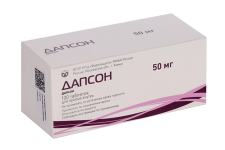Дапсон, 50 мг, 100 шт, таблетки