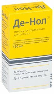 Главная » Аптека Де-Нол Таблетки покрытые оболочкой 120 мг 32 шт Просмотров 10 Противоязвенный препарат Де-Нол оказывает гастропротекторное действие. Де-Нол применяют при различных заболеваниях желудка и двенадцатиперстной кишк ЗиО-Здоровье