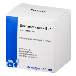 Дексаметазон-Виал — раствор для инъекций. Оказывает противовоспалительное, противоаллергическое, десенсибилизирующее, противошоковое, антитоксическое и иммунодепрессивное действие.