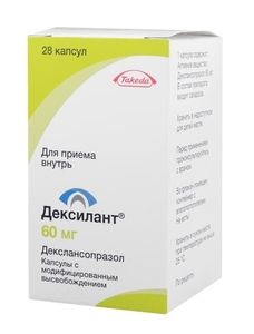Показания к применениюДексилант® предназначен для применения у взрослых и подростков в возрасте от 12 лет по следующим показаниям:лечение эрозивного эзофагита любой степени тяжести;поддерживающая терапия после лечения эрозивного эзофагита и облегчение проявлений изжоги;симптоматическое лечение гастроэзофагеальной рефлюксной болезни ГЭРБ (т.е. НЭРБ – неэрозивная рефлюксная болезнь);Применение при беременности и кормлении грудьюПрименение препарата Дексилант® в период беременности противопоказано. При необходимости применения препарата в период лактации следует прекратить грудное вскармливание.Противопоказания повышенная чувствительность к любому из компонентов препарата. совместное применение с ингибиторами протеаз ВИЧ, абсорбция которых зависит от рН среды желудка (таких как атазанавир, нелфинавир), из-за значительного уменьшения их биодоступности. возраст до 12 лет. беременность, период лактации. Препарат содержит сахарозу, поэтому его применение не рекомендовано пациентам с наследственной непереносимостью фруктозы, глюкозо-галактозной мальабсорбцией или сахаразно-изомальтазной недостаточностью.