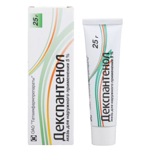 Показания к применению- сухость кожи, — раны и ожоги, — дерматиты, пролежни, опрелости, абсцессы, фурункулы после вскрытия и санации, — асептические послеоперационные раны, плохо приживающиеся кожные трансплантаты, — лечение и профилактика трещин и воспаления сосков молочной жПрименение при беременности и кормлении грудьюВозможно применение декспантенола при беременности и в период лактации (грудного вскармливания) по показаниям.ПротивопоказанияПовышенная чувствительность к компонентам препарата.Побочное действиеПобочные явления развиваются исключительно редко. Возможны незначительно выраженные аллергические реакции.СоставВ 100 г мази содержится: Активное вещество: Декспантенол — 5,0 г, Вспомогательные вещества: вазелин — 25,0 г, ланолин безводный — 15,0 г, парафин жидкий (вазелиновое масло) — 10,0 г, воск эмульсионный — 3,0 г, метиловый спирт — 1,0 г, стеариловый спирт — 0,65 г, метилпарагидроксибензоат (нипагин) — 0,2 г, вода очищенная — 40,15 г.Взаимодействие с другими препаратамиПри проведении дополнительной местной терапии интервал между применением дексопантенола и других препаратов должен составлять не менее 5 мин