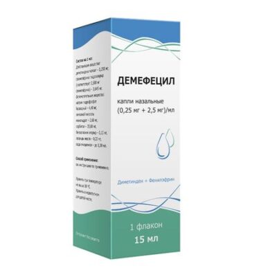 Показания Острый ринит (в т.ч. при простудных заболеваниях); аллергический ринит (в т.ч. при сенной лихорадке); вазомоторный ринит; хронический ринит; острый и хронический синусит; острый средний отит (в качестве вспомогательного средства); подготовка к хирургическим вмешательствам в области носа и устранение отека слизистой оболочки носа и придаточных пазух после хирургического вмешательства в этой области. Фармакологическое действие Комбинированное лекарственное средство с сосудосуживающим и противоаллергическим действием для местного применения при заболеваниях ЛОР-органов. Фенилэфрин — симпатомиметик, при местном применении оказывает умеренное сосудосуживающее действие (за счет стимуляции α1-адренорецепторов, расположенных в венозных сосудах слизистой оболочки носа), устраняет отек слизистой оболочки носа и его придаточных пазух. Диметинден является противоаллергическим средством — антагонистом гистаминовых H1-рецепторов; не снижает активность мерцательного эпителия слизистой оболочки носа. Фармакокинетика Для местного применения Лекарственное взаимодействие Противопоказан больным, получающим ингибиторы МАО в данное время или получавшим их в течение 2 предыдущих недель. Не следует назначать одновременно препарат с три- и тетрациклическими антидепрессантами, бета-адреноблокаторами.