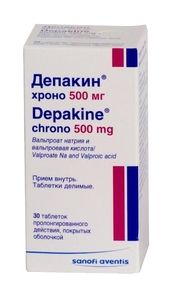 Показания к применениюУ взрослых: в качестве монотерапии или в комбинации с другими противоэпилептическими средствами:Для лечения генерализованных эпилептических приступов (клонические, тонические, тонико-клонические, абсансы, миоконические, атонические); синдром Леннокса-Гасто;Для лечения парциальных эпилептических приступов (парциальные приступы с вторичной генерализацией или без нее);Лечение и профилактика биполярных аффективных расстройствУ детей: в качестве монотерапии или в комбинации с другими противоэпилептическими средствами:Для лечения генерализованных эпилептических приступов (клонические, тонические, тонико-клонические, абсансы, миоконические, атонические); синдром Леннокса-Гасто;Для лечения парциальных эпилептических приступов (парциальные приступы с вторичной генерализацией или без нее).ПротивопоказанияПовышенная чувствительность к вальпроату, дивальпроату, вальпромиду или к какому-либо из компонентов лекарственного препарата;Острый гепатит;Хронический гепатит;Случаи тяжелого гепатита у пациента или в его семейном анамнезе, особенно вызванные лекарственными препаратами;Порфирия;Комбинация с мефлохином;Комбинация со зверобоем;Данный препарат не рекомендуется применять в комбинации с ламотриджином.Детский возраст до 6 лет (риск попадания в дыхательные пути при глотании).СоставДействующее вещество: Вальпроевая кислота (Valproic acid)Концентрация действующего вещества (мг): 500