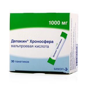 Показания к применениюУ взрослых (в качестве монотерапии или в комбинации с другими противоэпилептическими средствами): — для лечения генерализованных эпилептических приступов: клонические, тонические, тонико-клонические, абсансы, миоклонические, атонические; синдром Леннокса-Гасто;- для лечения парциальных эпилептических приступов: парциальные приступы с вторичной генерализацией или без нее;- лечение и профилактика биполярных аффективных расстройств.У грудных детей (начиная с 6 месяца жизни) и детей (в качестве монотерапии или в комбинации с другими противоэпилептическими средствами): — для лечения генерализованных эпилептических приступов: клонические, тонические, тонико-клонические, абсансы, миоклонические, атонические; синдром Леннокса-Гасто;- для лечения парциальных эпилептических приступов: парциальные приступы с вторичной генерализацией или без нее;- профилактика судорог при высокой температуре, когда такая профилактика необходима.Противопоказания- острый гепатит;- хронический гепатит;- случаи тяжелого гепатита у пациента или в его семейном анамнезе, особенно вызванные лекарственными препаратами;- тяжелые нарушения функции печени;- тяжелые нарушения функции поджелудочной железы;- порфирия;- геморрагический диатез, тромбоцитопения;- комбинации с мефлохином, препаратами зверобоя;- детский возраст до 6 месяцев;- повышенная чувствительность к вальпроату или какому-либо из компонентов препарата.Данный препарат не рекомендуется применять в комбинации с ламотриджином.С осторожностью следует применять препарат при заболеваниях печени и поджелудочной железы в анамнезе, при беременности, врожденных ферментопатиях, при угнетении костномозгового кроветворения (лейкопения, тромбоцитопения, анемия), при почечной недостаточности, гипопротеинемии.СоставДействующее вещество: Вальпроевая кислотаКонцентрация действующего вещества (мг): 1000 мг