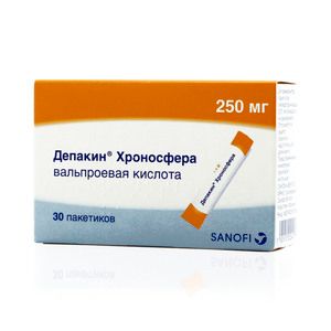 Показания к применениюУ взрослых (в качестве монотерапии или в комбинации с другими противоэпилептическими средствами): — для лечения генерализованных эпилептических приступов: клонические, тонические, тонико-клонические, абсансы, миоклонические, атонические; синдром Леннокса-Гасто; — для лечения парциальных эпилептических приступов: парциальные приступы с вторичной генерализацией или без нее; — лечение и профилактика биполярных аффективных расстройств. У грудных детей (начиная с 6 месяца жизни) и детей (в качестве монотерапии или в комбинации с другими противоэпилептическими средствами): — для лечения генерализованных эпилептических приступов: клонические, тонические, тонико-клонические, абсансы, миоклонические, атонические; синдром Леннокса-Гасто; — для лечения парциальных эпилептических приступов: парциальные приступы с вторичной генерализацией или без нее; — профилактика судорог при высокой температуре, когда такая профилактика необходима.Противопоказания- острый гепатит; — хронический гепатит; — случаи тяжелого гепатита у пациента или в его семейном анамнезе, особенно вызванные лекарственными препаратами; — тяжелые нарушения функции печени; — тяжелые нарушения функции поджелудочной железы; — порфирия; — геморрагический диатез, тромбоцитопения; — комбинации с мефлохином, препаратами зверобоя; — детский возраст до 6 месяцев; — повышенная чувствительность к вальпроату или какому-либо из компонентов препарата. Данный препарат не рекомендуется применять в комбинации с ламотриджином. С осторожностью следует применять препарат при заболеваниях печени и поджелудочной железы в анамнезе, при беременности, врожденных ферментопатиях, при угнетении костномозгового кроветворения (лейкопения, тромбоцитопения, анемия), при почечной недостаточности, гипопротеинемии.СоставДействующее вещество: Вальпроевая кислотаКонцентрация действующего вещества (мг): 250 мг