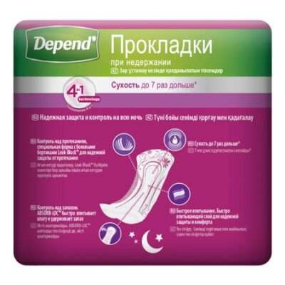 Главная » Аптека Депенд прокладки при недержании мочи для женщин ночные супер №6 Просмотров 11 KIMBERLY-CLARK