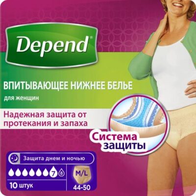 Депенд трусы-подгузники для женщин р.M L №8 10
