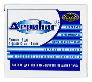 Показания к применениюРадиационные поражения; нарушение гемопоэза; миелодепрессия и резистентность к цитостатикам у онкологических больных, развившаяся на фоне цитостатической и/или лучевой терапии (стабилизация гемопоэза, снижение кардио- и миелотоксичности химиопрепаратов); стоматиты, индуцированные цитостатической терапией; язвенная болезнь желудка и двенадцатиперстной кишки, эрозивный гастродуоденит; ИБС; облитерирующие заболевания сосудов нижних конечностей II-III стадии; трофические язвы, длительно незаживающие раны; одонтогенный сепсис, гнойно-септические осложнения; ревматоидный артрит; ожоговая болезнь; предоперационный и послеоперационный периоды (в хирургической практике); хламидиоз, уреаплазмоз, микоплазмоз; эндометрит, сальпингоофорит, эндометриоз, миомы; простатит, доброкачественная гиперплазия предстательной железы; хронические обструктивные заболевания легких; туберкулез легких, воспалительные заболевания дыхательных путей.Применение при беременности и кормлении грудьюПациентка должна быть предупреждена, что перед применением препарата при беременности и в период лактации необходима консультация врача. При необходимости назначения препарата при беременности следует оценить ожидаемую пользу для матери и потенциальный риск для плода.ПротивопоказанияПовышенная чувствительность к компонентам препарата.Побочное действиеВозможно: у больных сахарным диабетом отмечается гипогликемическое действие, которое следует учитывать, контролируя уровень глюкозы в крови.СоставДезоксирибонуклеат натрия 75 мг. Вспомогательные вещества: натрия хлорид (0.9 г), вода д/и (до 100 мл).Взаимодействие с другими препаратамиПрименение Дерината в комплексной терапии позволяет повысить эффективность и сократить продолжительность терапии, при значительном уменьшении доз антибиотиков и противовирусных средств с увеличением периодов ремиссии. Деринат повышает эффективность противоопухолевых антибиотиков антрациклинового ряда, цитостатиков.