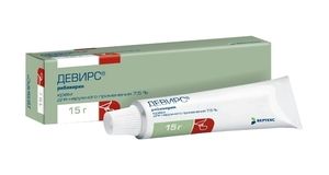 Показания к применениюВ виде монотерапии или в комбинации с другими лекарственными формами рибавирина для приема внутрь и парентерального применения при следующих заболеваниях: инфекции кожи и слизистых оболочек, вызванные вирусами Herpes simplex 1 и 2 типов, различной локализации, в т.ч. в области гениталий опоясывающий герпес (в составе комплексной терапии). Применение при беременности и кормлении грудьюПрименение крема при беременности и в период лактации противопоказано. Женщины и мужчины репродуктивного возраста во время лечения и в течение 7 месяцев после окончания терапии должны использовать эффективные контрацептивные средства.Противопоказания беременность период лактации (грудного вскармливания) детский и подростковый возраст до 18 лет повышенная чувствительность к рибавирину и другим компонентам препарата. С осторожностью следует применять препарат при почечной недостаточности, у женщин и мужчин репродуктивного возраста.Побочное действиеАллергические реакции: возможна кожная сыпь, крапивница, экзантема. Прочие: выпадение волос, изменение содержания тиреотропного гормона (ТТГ). Крайне редко — симптомы аутоиммунных заболеваний. Наблюдаемые эффекты, как правило, обратимы, не влияют на эффективность лечения и прекращаются после окончания лечения.СоставРибавирин 7.5 г. Вспомогательные вещества: глицерил моностеарат (глицерол моностеарат 40-50) — 2 г, макрогола-6 цетостеарилового спирта эфир (макрогола-6 цетостеариловый эфир) — 1.5 г, макрогола-25 цетостеарилового спирта эфир (макрогола-25 цетостеариловый эфир) — 1.5 г, цетостеариловый спирт — 5 г, парафин жидкий (масло вазелиновое) — 5 г, метилпарагидроксибензоат (метилгидроксибензоат, метилпарабен, нипагин) — 0.1 г, пропилпарагидроксибензоат (пропилгидроксибензоат, пропилпарабен, нипазол) — 0.02 г, вода очищенная — до 100 г.