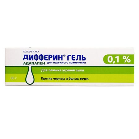 Дифферин® гель — препарат для лечения угревой сыпи (акне) легкой и средней степени тяжести, в том числе при наличии комедонов, папул и пустул. Гель от акне и прыщей на лице действует на причины возникновения акне и оказывает комплексный эффект: • Препарат от угрей и черных точек воздействует на комедоны и предотвращает появление новых высыпаний (уменьшает образование микрокомедонов); • Компоненты геля от прыщей обладают комедонолитической и противоспалительной активностью; • Средство от прыщей на лице не является антибиотиком, поэтому не вызывает резистентности у Cutibacterium acnes; • Клиническое улучшение развивается после 4-8 недель лечения, стойкое улучшение после 3-месячного курса лечения. Дифферин® гель от комедонов и акне следует наносить тонким слоем на пораженные угревой сыпью участки кожи 1 раз/сут перед сном на чистую сухую кожу, избегая попадания препарата в глаза, на губы, слизистые оболочки и уголки носа. Препарат следует хранить в недоступном для детей месте при температуре не выше 25°C. Не замораживать.