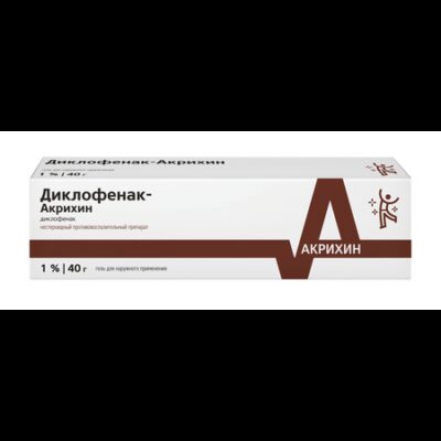 Показания Всасывание и распределение При наружном применении диклофенак хорошо проникает через кожу, преимущественно концентрируясь в очаге воспаления и синовиальной жидкости. Количество диклофенака, которое всасывается через кожу, пропорционально времени контакта препарата с кожей и площади его нанесения, зависит от суммарной дозы препарата и от степени гидратации кожи. При рекомендуемом способе нанесения препарата абсорбируется не более 6% диклофенака. Применение окклюзионной повязки в течение 10 ч приводит к 3-кратному увеличению резорбции диклофенака. Связывание с белками плазмы (преимущественно с альбуминами) составляет 99%. Метаболизм и выведение Метаболизируется в печени, главным образом, путем гидроксилирования, с образованием нескольких производных, два из которых фармакологически активны, но в меньшей степени, чем диклофенак. Выводится почками (около 65%) и с желчью (около 35%) в форме неактивных соединений с глюкуроновой и серной кислотами; менее 1% экскретируется в неизмененном виде. Общий системный плазменный клиренс диклофенака составляет, в среднем, 263 мл/мин, конечный Т1/2 — 1 -2 ч. Фармакологическое действие Активный компонент диклофенак — нестероидный противовоспалительный препарат (НПВП), обладающий выраженными анальгезирующими и противовоспалительными свойствами. Неизбирательно угнетая ЦОГ-1 и ЦОГ-2, нарушает метаболизм арахидоновой кислоты и синтез простагландинов, являющихся основным звеном в развитии воспаления. Диклофенак-Акрихин применяется для устранения болевого синдрома и уменьшения отечности, связанной с воспалительным процессом. При местном применении вызывает ослабление или исчезновение болей в суставах в покое и при движении. Уменьшает утреннюю скованность и припухлость суставов, способствует увеличению объема движений. При постоперационных и травматических повреждениях быстро подавляет боль и явления воспаления в области нанесения препарата, способствует рассасыванию посттравматической гематомы. Препарат в виде геля, благодаря водно-этаноловой основе, дополнительно оказывает местноанестезирующее действие. Лекарственное взаимодействие Препарат может усиливать действие препаратов, вызывающих фотосенсибилизацию. Клинически значимого взаимодействия с другими лекарственными препаратами не описано.