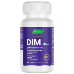 ДИМ 200 мг от Evalar Laboratory содержит активную биодоступную форму индола – дииндолилметан. Состав препарата усилен витамином Е в высокой концентрации, а также экстрактом черного перца.Дииндолилметан 200 мг от Evalar Laboratory: способствует поддержанию нормального уровня эстрогенов в женском организме, стимулирует расщепление жиров и способствует похудению, уменьшает симптоматику предменструального синдрома и менопаузы, применяется при комплексном подходе в лечении акне. Дииндолилметан (ДИМ) — это вещество, которое образуется при переваривании овощей семейства крестоцветных (брокколи или брюссельская капуста) желудочным соком. В процессе переваривания соединение, называемое индол-3-карбинол, расщепляется и в результате образуется — дииндолилметан.ДИМ 200 мг от Evalar Laboratory способствует поддержанию в организме нормального уровня эстрогена, а также замедляет фермент ароматазу, который преобразует тестостерон в эстроген.Дииндолилметан также используют для предотвращения увеличения простаты, лечения акне, снижения веса и уменьшения предменструального синдрома (ПМС) и симптомов менопаузы.Кроме того, добавки, содержащие дииндолилметан, могут стимулировать расщепление жиров и замедлять формирование жировых клеток, способствуя похудению.