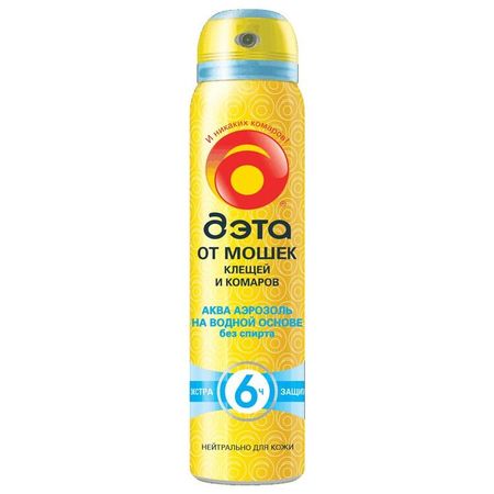 Обеспечивает надежную защиту от мошек, клещей, комаров, мокрецов, слепней и москитов до 5,84 часов*. Удобная аэрозольная упаковка позволяет легко наносить средство на кожу и на одежду. Благодаря рецептуре на водной основе не сушит кожу. Не оставляет пятен. Не содержит спирт.