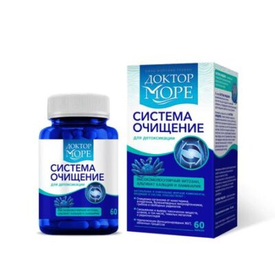 СИСТЕМА ОЧИЩЕНИЕ — комплексный энтеросорбент на основе активных веществ морского животного и растительного мираВ основе СИСТЕМА ОЧИЩЕНИЕ — высокомолекулярный хитозан, альгинат кальция и водоросль ламинария — компоненты, обладающие способностью оказывать детоксикационное действие на наш организм.Содержание в 4 капсулах:Альгинаты (альгиновая кислота), мг 522Хитозан (полисахариды), мг 468Йод, мкг 360Кальций, мг 103,5Пищевая ценность в 100 г: белки -18,0 г, пищевые волокна — 55,0 г.Энергетическая ценность: 72 ккал/100 г (301 кДж /100 г)В состав комплекса СИСТЕМА ОЧИЩЕНИЕ входят полностью натуральные компоненты: хитозан, альгинат кальция и ламинария.ХитозанПриродный полисахарид, полученный из панциря камчатского краба. Он способен активно сорбировать молекулы органической и неорганической природы, эффективен при повышенной токсической нагрузке, пищевых отравлениях и различных интоксикациях. Хитозан притягивает молекулы жира и выводит их из организма. Одна молекула хитозана выводит из организма жира в 10-12 раз больше своего молекулярного веса, поэтому его применяют в диетотерапии для снижения массы тела.А также:способствует детоксикации организма при избыточном приеме алкоголя и жирной пищи;способствует быстрому и полному освобождению организма от токсинов, болезнетворных микроорганизмов, грибков, аллергенов, солей тяжелых металлов, радионуклидов;попадая в желудок, набухает, превращаясь гелеобразное вещество, способствуя защите слизистой желудка от развития эрозивных процессов;снижает уровень холестерина, триглицеридов и общих липидов в сыворотке крови;стимулирует образование бифидобактерий и полезной кишечной флоры, предотвращает газообразование, связывает и ликвидирует источники брожения.Альгинат кальция (кальциевая соль альгиновой кислоты)связывает и удаляет из организма побочные продукты обмена веществ, соли тяжелых металлов и радионуклиды;очищает желудочно-кишечный тракт от патогенной микрофлоры, помогает восстановлению полезной микрофлоры после приема антибиотиков;является источником биодоступного кальция, который необходим для поддержания плотности костной ткани;предупреждает запоры, метеоризм, стимулирует моторику кишечника, способствует улучшению процесса пищеварения и желчевыделения.Ламинария японскаясодержит аминокислоты, растворимые полисахариды в связанном виде (фукоза, манноза, глюкоза, маннит), ламинарин, фукоидан, липиды, витамины А, B1, B2, B12, аскорбиновую кислоту, производные хлорофилла, каротиноиды, макро- и микроэлементы (калий, магний, кальций, натрий, бром, железо, молибден, марганец, медь, цинк,селен), йод в органической биодоступной форме, необходимый для устранения йододефицита в организме.А также способствует:детоксикации организма, очищая его от радионуклидов, тяжелых металлов и токсинов;снижению уровня общего холестерина и триглицеридов, тем самым, чистит сосуды и снижает вероятность развития атеросклероза;уменьшению свертываемости крови, препятствует образованию тромбов;нормальной работе кишечника (стимулирует его моторику, тем самым мягко избавляя от запоров).
