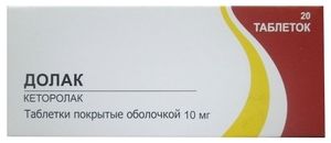 Показания к применениюДля кратковременного купирования умеренных и сильных болей различного генеза.Применение при беременности и кормлении грудьюПротивопоказан при беременности, во время родов и в период лактации (грудного вскармливания). Кеторолак противопоказан для применения в качестве средства для премедикации, поддерживающей анестезии и для обезболивания в акушерской практике, поскольку под его влиянием возможно увеличение длительности первого периода родов. Кроме того, кеторолак может угнетать сократимость матки и кровообращение плода.ПротивопоказанияЭрозивно-язвенные поражения ЖКТ в фазе обострения, наличие или подозрение на желудочно-кишечное кровотечение и/или черепно-мозговое кровоизлияние, нарушения свертывания крови в анамнезе, состояния с высоким риском кровотечения или неполного гемостаза, геморрагический диатез, умеренные и выраженные нарушения функции почек (содержание сывороточного креатинина более 50 мг/л), риск развития почечной недостаточности при гиповолемии и дегидратации»аспириновая триада», бронхиальная астма, полипы полости носа, ангионевротический отек в анамнезе, профилактическое обезболивание перед операцией и во время операции, детский и подростковый возраст до 16 лет, беременность, роды, лактация, повышенная чувствительность к кеторолаку, ацетилсалициловой кислоте и другим НПВС.Побочное действиеСо стороны сердечно-сосудистой системы: редко — брадикардия, изменения АД, сердцебиение, обморок. Со стороны пищеварительной системы: возможны тошнота, боли в животе, диарея . редко — запор, метеоризм, чувство переполнения ЖКТ, рвота, сухость во рту, жажда, стоматит, гастрит, эрозивно-язвенные поражения ЖКТ, нарушения функции печени. Со стороны ЦНС и периферической нервной системы: возможны беспокойство, головная боль, сонливость . редко — парестезии, депрессия, эйфория, нарушения сна, головокружение, изменение вкусовых ощущений, нарушения зрения, двигательные нарушения. Со стороны дыхательной системы: редко — нарушение дыхания, приступы удушья. Со стороны мочевыделительной системы: редко – учащение мочеиспускания, олигурия, полиурия, протеинурия, гематурия, азотемия, острая почечная недостаточность. Со стороны системы свертывания крови: редко – носовые кровотечения, анемия, эозинофилия, тромбоцитопения, кровотечения из послеоперационных ран. Со стороны обмена веществ: возможно усиление потоотделения, отеки . редко — олигурия, повышение уровня креатинина и/или мочевины в плазме крови, гипокалиемия, гипонатриемия. Аллергические реакции: возможны кожный зуд, геморрагическая сыпь . в единичных случаях — эксфолиативный дерматит, крапивница, синдром Лайелла, синдром Стивенса-Джонсона, анафилактический шок, бронхоспазм, отек Квинке, миалгии. Прочие: возможна лихорадка. Местные реакции: боль в месте инъекции.Состав1 таб. кеторолака трометамин 10 мг.