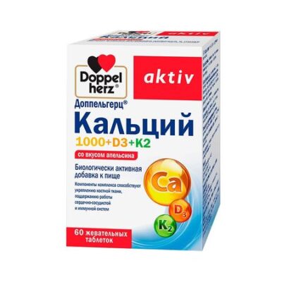 Главная » Аптека Доппельгерц Актив Кальций 1000+Д3+К2 Таб.жев.№60 Просмотров 6 Компоненты комплекса способствуют укреплению костной ткани, поддержанию работы сердечно-сосудистой и иммунной систем. Квайссер Фарма ГмбХ и Ко. КГ