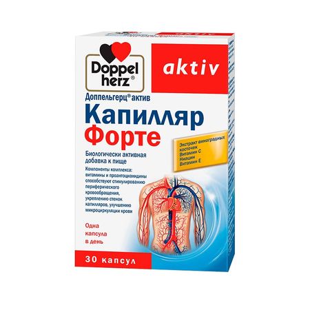 Главная » Аптека Доппельгерц Актив Капилляр Форте Капс.№30 Просмотров 8 Компоненты комплекса: витамины и проантоцианидины способствуют стимулированию периферического кровообращения, укреплению стенок капилляров, улучшению микроциркуляции крови. Квайссер Фарма ГмбХ и Ко. КГ