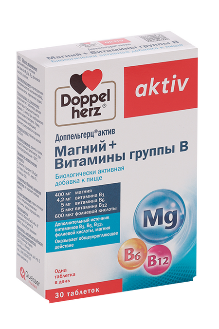 Главная » Аптека Доппельгерц Актив Магний+Витамины группы B, 1 405 мг, 30 шт, таблетки Просмотров 7 Квайссер Фарма ГмбХ