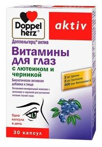 Всего несколько часов работы за монитором в день может привести к развитию компьютерного зрительного синдрома, основные проявления которого – это астенопия и синдром сухого глаза. Они проявляются быстрой утомляемостью глаз, снижением зрения, ухудшением фокусировки, а также жжением, сухостью в глазах, ощущением инородного тела и слезотечением.Большую эффективность в борьбе с компьютерным зрительным синдромом и синдромом сухого глаза показали препараты, содержащие антиоксиданты и микронутриенты, способные улучшить питание тканей глаза и зрительные функции.Доппельгерц® актив Витамины для глаз с лютеином и черникой содержит антоцианозиды. Это сильнейшие растительные антиоксиданты черники, которые защищают сосуды от свободных радикалов, улучшают капиллярный кровоток в сетчатке, укрепляют сосуды. И, что очень важно, ускоряют процессы регенерации родопсина – светочувствительного пигмента сетчатки, который страдает от воздействия ярких экранов гаджетов и ультрафиолета.Второй важный компонент этого витаминно-минерального комплекса – лютеин. Он выполняет роль естественного светофильтра и защищает сетчатку от повреждений, что позволяет улучшить ее чувствительность и даже повысить остроту зрения. Компонент капсул % от рекомендуемой суточной дозы Гесперидин 35 мг 17.5* Антоцианы 19 мг 38* Цинк 3 мг 20 Лютеин 3 мг 60* Витамин A 400 мкг 50 * адекватный уровень потребления.