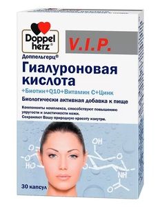 Доппельгерц V.I.P. Гиалуроновая кислота + Биотин + Q10 + Витамин С + Цинк Капсулы массой 930 мг 30 шт