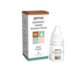 Прозрачный бесцветный или почти бесцветный, слегка вязкий раствор.Характеристика препарата:Препарат Дортис содержит действующие вещества дорзоламид (ингибитор карбоангидразы) и тимолол (блокатор бета-адренорецепторов), которые применяются для лечения глаукомы — заболевания, сопровождающегося повышением внутриглазного давления (офтальмогипертензия).Препарат Дортис — средство, применяемое в офтальмологии, для снижения внутриглазного давления.Дорзоламид принадлежит к группе препаратов, называемых ингибиторами карбоангидразы. Тимолол принадлежит к группе препаратов, называемых бета-блокаторами.