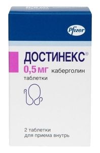 Показания к применению— предотвращение физиологической послеродовой лактации; — подавление установившейся послеродовой лактации; — лечение нарушений, связанных с гиперпролактинемией, включая аменорею, олигоменорею, ановуляцию и галакторею; — пролактинсекретирующие аденомы гипофиза (микро- и макропролактиномы), идиопатическая гиперпролактинемия, синдром «пустого» турецкого седла в сочетании с гиперпролактинемией.Применение при беременности и кормлении грудьюПоскольку контролируемых клинических исследований с применением препарата Достинекс; у беременных женщин не проводилось, назначение препарата при беременности возможно только в случаях крайней необходимости, когда ожидаемая польза для матери превосходит потенциальный риск для плода.;Если беременность наступила на фоне лечения препаратом Достинекс;, следует рассмотреть целесообразность отмены препарата, также учитывая соотношение польза/риск.;По имеющимся данным применение Достинекса в дозе 0.5-2 мг в неделю по поводу нарушений, связанных с гиперпролактинемией, не сопровождалось увеличением частоты выкидышей, преждевременных родов, многоплодной беременности и врожденных пороков развития.;Сведений о выделении препарата с грудным молоком нет, однако при отсутствии эффекта применения препарата Достинекс; для предотвращения или подавления лактации следует отказаться от грудного вскармливания. При нарушениях, связанных с гиперпролактинемией, Достинекс; не следует назначать матерям, не желающим прекращать лактацию.Противопоказания— повышенная чувствительность к каберголину или другим компонентам препарата, а также к любым алкалоидам спорыньи; — нарушения функции сердца и дыхания вследствие фиброзных изменений или наличие таких состояний в анамнезе; — при длительной терапии: анатомические признаки патологии клапанного аппарата сердца (такие как утолщение створки клапана, сужение просвета клапана, смешанная патология сужение и стеноз клапана), подтвержденные эхокардиографическим исследованием (ЭхоКГ), проведенным до начала терапии; — непереносимость лактозы, дефицит лактазы, глюкозо-галактозная мальабсорбция.;— детский и подростковый возраст до 16 лет (безопасность и эффективность применения не установлены).;Достинекс; следует назначать с осторожностью при следующих состояниях и/или заболеваниях: — артериальная гипертензия, развившаяся на фоне беременности, например, преэклампсия или послеродовая артериальная гипертензия (Достинекс; назначается только в тех случаях, когда потенциальная польза от применения препарата значительно превышает возможный риск); — тяжелые сердечно-сосудистые заболевания, синдром Рейно; — пептическая язва, желудочно-кишечные кровотечения; — тяжелая печеночная недостаточность (рекомендуется применение более низких доз); — тяжелые психотические или когнитивные нарушения (в т.ч. в анамнезе); — одновременное применение с препаратами, оказывающими гипотензивное действие (из-за риска развития ортостатической гипотензии).