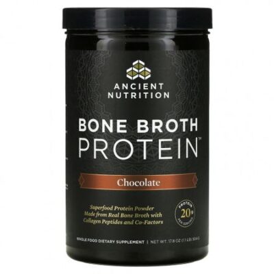 † Суточная норма не определена. КожаЗдоровье суставовБез ГМОЗапатентованная формула20 г белка в 1 порцииПротеиновый порошок из суперпродуктовИзготовлено из натурального костного бульона с пептидами и кофакторами коллагенаЦельнопищевая добавкаBone Broth Protein ™Ancient Nutrition обеспечивает то, чего нет в современном мире: легкий доступ к простым питательным веществам из цельных продуктов, которые способствуют укреплению здоровья, силы и жизненной силы.Протеин Bone Broth Protein подходит для людей, соблюдающих палеодиету (подтверждено сертификатом), не содержит распространенных аллергенов и является идеальным источником белка для людей, чувствительных к молочным продуктам, зерновым культурам, яйцам, говядине, орехам и бобовым. Костный бульон — это просто! Прекрасно подходит для коктейлей, коктейлей или добавления в ваши любимые рецепты — всего лишь 2 г углеводов!Каждая порция содержит+11 200 мг коллагена типа II+1600 мг хондроитина+280 мг гиалуроновой кислоты+30 мг глюкозамина