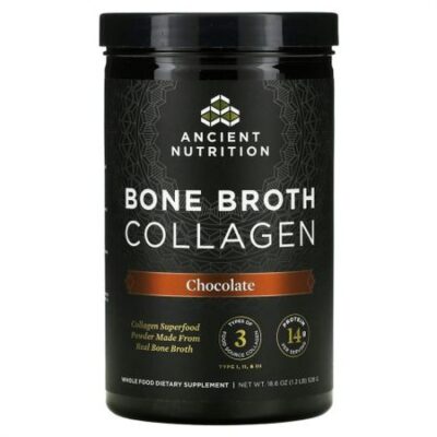 Dr. Axe / Ancient Nutrition, коллаген из костного бульона, со вкусом шоколада, 528 г (1,2 фунта)