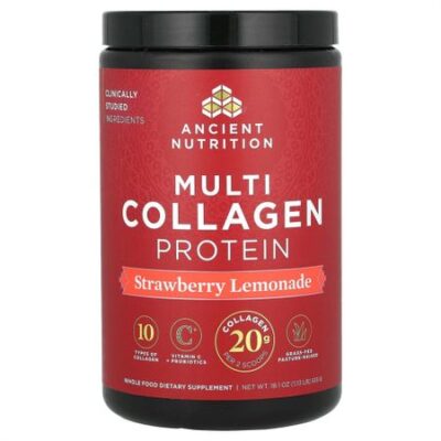 Dr. Axe / Ancient Nutrition, Multi Collagen Protein, Strawberry Lemonade, 1.18 lbs (535.5 g)