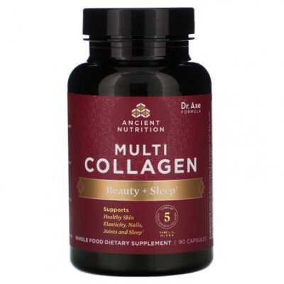 Dr. Axe / Ancient Nutrition, Мультиколлаген, красота + сон, 90 капсул