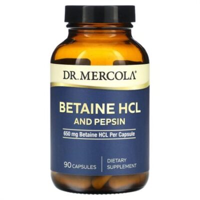 Dr. Mercola, Бетаин гидрохлорид и пепсин, 650 мг, 90 капсул