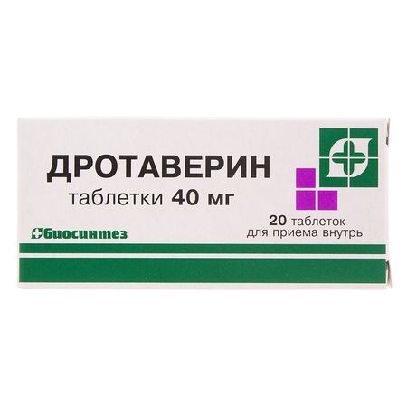 Показания После приема внутрь дротаверин быстро абсорбируется из ЖКТ. После пресистемного метаболизма в системный кровоток поступает 65 % дозы. Cmax дротаверина в плазме крови достигается через 45-60 мин. Связывание с белками плазмы — 95-98%. Равномерно распределяется в тканях, проникает в гладкомышечные клетки. Не проникает через ГЭБ; дротаверин и/или его метаболиты могут незначительно проникать через плацентарный барьер. Дротаверин почти полностью метаболизируется в печени. T1/2 дротаверина составляет 8-10 ч. В течение 72 ч дротаверин практически полностью выводится из организма. Около 50 % выводится почками и около 30 % — через ЖКТ. Дротаверин главным образом экскретируется в виде метаболитов, неизмененная форма дротаверина в моче не обнаруживается. При парентеральном введении дротаверин быстро всасывается. Биодоступность — 100 %. Начало действия — через 2-4 мин. Cmax в плазме крови достигается через 30-40 мин. Фармакологическое действие Спазмолитик миотропного действия. По химической структуре и фармакологическим свойствам близок к папаверину, однако превосходит его по эффективности и продолжительности действия. Дротаверин эффективен при спазмах гладкой мускулатуры как нейрогенного, так и мышечного происхождения. Независимо от типа вегетативной иннервации, дротаверин расслабляет гладкую мускулатуру жкт, желчевыводящих путей, мочеполовой системы. Вследствие своего сосудорасширяющего действия дротаверин улучшает кровоснабжение тканей. Лекарственное взаимодействие При одновременном применении с трициклическими антидепрессантами, хинидином, прокаинамидом усиливается снижение АД, вызываемое трициклическими антидепрессантами, хинидином и прокаинамидом. При одновременном применении уменьшается спазмогенная активность морфина. При одновременном применении с леводопой возможно уменьшение противопаркинсонического эффекта леводопы. При одновременном применении усиливается действие папаверина, бендазола и других спазмолитиков (в т.ч. м-холиноблокаторов). При одновременном применении с фенобарбиталом повышается выраженность спазмолитического действия дротаверина.