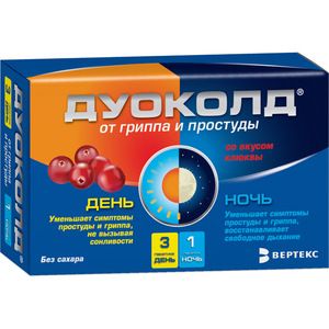 Дуоколд Порошок для приготовления раствора День 3 шт + Ночь 1 шт Клюква