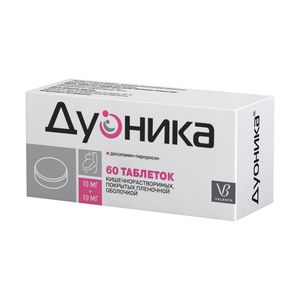 Круглые двояковыпуклые таблетки, покрытые оболочкой светло-розового цвета. На поперечном разрезе ядро белого или почти белого цвета. Характеристика препарата:Препарат Дуоника® является комбинированным препаратом, содержащим два действующих вещества: доксиламин (в виде сукцината) и пиридоксин (в виде гидрохлорида).Препарат Дуоника® относится к группе препаратов под названием антигистаминные средства системного действия, эфиры алкиламинов .Препарат Дуоника® устраняет тошноту и рвоту при беременности.