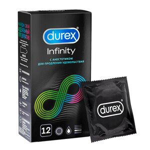 Содержат натуральный латекс, силиконовую смазку, анестетик (бензокаин) – 0,14 г.Для продления полового акта, а также предотвращения преждевременной эякуляцииПрезервативы Durex Infinity содержат смазку с добавлением анестетика (бензокаина) внутри презерватива и обычную силиконовую смазку снаружи. Для продления полового акта, а также предотвращения преждевременной эякуляции. Благодаря технологии производства не имеют неприятного запаха. Все предусмотрено для того, чтобы вы могли расслабиться и наслаждаться безопасным сексом.Номинальные размеры: длина – 195 мм, ширина – 56 мм.Дерматологически тестированы.100% проверены электроникой.