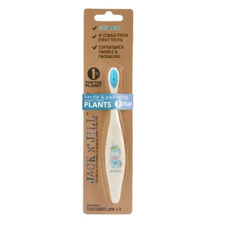 Детская зубная щетка Jack n’Jill из органического биоразлагаемого пластика для эффективной и бережной чистки. Подходит малышам до 3-х лет, используется с первого зубика. Небольшой размер головки щетки позволит малышу чистить зубы с комфортом. Благодаря эргономичной форме, щетку удобно держать в детских ручках. Щетка оснащена мягкими нейлоновыми щетинками DUPONT толщиной всего 0,1 мм. Доступна в разных вариантах с любимыми героями.