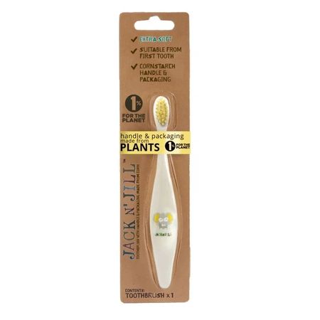 Детская зубная щетка Jack n’Jill из органического биоразлагаемого пластика для эффективной и бережной чистки. Подходит малышам до 3-х лет, используется с первого зубика. Небольшой размер головки щетки позволит малышу чистить зубы с комфортом. Благодаря эргономичной форме, щетку удобно держать в детских ручках. Щетка оснащена мягкими нейлоновыми щетинками DUPONT толщиной всего 0,1 мм. Доступна в разных вариантах с любимыми героями.