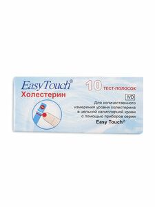 Система мониторинга EasyTouch® по измерению уровня холестерина в крови предназначена для количественного измерения уровня холестерина в свежей капиллярной цельной крови. Это измерение основано на определении текущего изменения, которое вызвано реакцией взаимодействия холестерина с реагентом на электроде тест-полоски. Когда образец крови легко соприкасается с контрольным полем полоски, кровь автоматически втягивается в реагентную зону анализа.Результат теста будет отображен на экране прибора спустя 150 секунд.Диапазон измерения системы мониторинга EasyTouch® по измерению уровня холестерина в крови лежит в пределах от 2.6 до 10.4ммоль/л. (100 до 400 мг/дл).Тест-полоски EasyTouch® на холестерин предназначены для использования только с образцом свежей капиллярной цельной крови.Храните тест-полоски при температуре от 4 градусов С до 30 градусов С.Не замораживать.Не используйте тест-полоски, если у Вас мокрые или грязные руки.Критически больных пациентов не следует тестировать системой для мониторинга холестерина в домашних условиях.Ни в коем случае не режьте, не сгибайте, не царапайте тестполоски.Выбрасывайте каждую тест-полоску после одноразового использования.Не используйте тест-полоски после истечения срока годности.Капля крови наносится с боковых торцов тест-полоски.Для измерения требуется 15 мкл крови, результат измерения холестерина будет показан на экране прибора через 150 секундДля использования требуется прибор Изи ТачТест-полоски EasyTouch® на холестеринАнализатор крови портативный биохимический EasyTouch® GC,GCHb,GCU