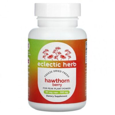 Eclectic Institute, сублимированные ягоды боярышника, 500 мг, 90 вегетарианских капсул