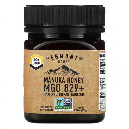 20 + UMFESTD 2008Product of New Zealand Non- GMO Project VerifiedBPA FreeHALALKosher KiwiThe Egmont Honey label depicts Mt Taranaki (Taranaki Maunga), a famous mountain that stands above the region and is held sacred by the traditional Maori people of New Zealand. We were founded in Taranaki, and are proud to call it our home.UMF™ is a quality trademark, The UMF grading system appraises natural markers found in Manuka honey, and assures purity and quality.Certified MGO ensures this honey contains at least 829mg/kg of methylglyoxal as tested by an IANZ approved laboratory.