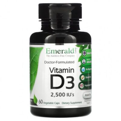 Emerald Laboratories, Витамин D3, 2500 МЕ, 60 вегетарианских капсул
