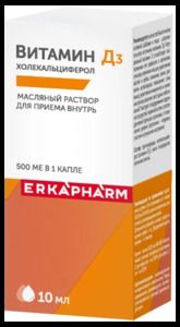 Erkapharm Витамин Д3 500МЕ Раствор масляный — Биологически активная добавка (БАД) к пищеНатуральный витамин D способствует восполнению его дефицита в организме, лучшему усвоению кальция, укреплению костей и зубов, снижению риска развития остеопороза, повышению силы мышц, укреплению иммунитета и снижению риска развития простудных заболеваний. Участвует в поддержании сердечно-сосудистой, нервной систем и репродуктивной функции организма, в повышении уровня серотонина — «гормона счастья» и улучшении настроения