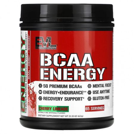 Описание Содержит 5 г аминокислот с разветвленной цепью премиального качестваУвеличивает запас энергии и повышает выносливость**Способствует восстановлениюПомогает сосредоточитьсяМожно принимать в любое времяНе содержит глютенаНатуральные и искусственные ароматизаторыПищевая добавкаАминокислоты с разветвленной цепью от Evlution, разработанные и насыщенные энергией для приема до, во время и после тренировки, перечисленные ниже преимущества.ВосстановлениевыносливостиКонцентрация умаэнергииЭффективная работа систем организмаНаращивание мышечной массы** Повышает выносливость благодаря аминокислотам с разветвленной цепью. Рекомендации по применению В качестве пищевой добавки смешайте 2 мерные ложки BCAA Energy® с 240–240 мл (8–10 унциями) холодной воды (количество воды может варьироваться в зависимости от вкусовых предпочтений).Для Anytime Energy® и BCAA: используйте 1 порцию (2 мерные ложки).Для интенсивных тренировок с BCAA: используйте 1,5 порции (3 мерные ложки).Для восстановления с BCAA: используйте 1 порцию (2 мерные ложки).ПрименениеПовышение уровня энергииИнтенсивные тренировкиВосстановлениеКоличество мерных ложек2 мерные ложки3 мерные ложки2 мерные ложкиКоличество BCAA5 г7,5 г5 гВсего аминокислот6,5 г9,75 г6,5 гНатуральный источник энергии110 мг165 мг110 мг Ингредиенты Яблочная кислота, натуральные и искусственные ароматизаторы, лимонная кислота, сукралоза, диоксид кремния, ацесульфам калия, краситель красный 40 FD&C. Предупреждения BCAA Energy® содержит кофеин и бета-аланин. Бета-аланин может вызывать временное покалывание кожи. Это нормальное явление, которое уменьшается по мере использования.Этот продукт предназначен только для здоровых взрослых людей в возрасте 18 лет и старше. Не используйте этот продукт, если у вас есть какое-либо заболевание или подозрение на него, а также если вы принимаете рецептурные или безрецептурные препараты. Не предназначено для беременных и пытающихся забеременеть женщин, а также тех, кто кормит грудью. Прекратите использование за 2 недели до хирургической операции. Не используйте при наличии чувствительности к кофеину. Не превышайте рекомендуемую суточную дозу в 3 мерные ложки. Хранить в недоступном для детей месте. Пищевая ценностьРазмер порции: 2 мерные ложки (9,4 г)Порций в упаковке: 65 Количество в 1 порции% от суточной нормыВитамин С (в виде аскорбиновой кислоты)90 мг100%Витамин В6 (в виде пиридоксина гидрохлорида)10 мг588%Витамин В12 (в виде метилкобаламина)30 мкг1250%Матрица 2:1:1 BCAAL-лейцин (инстантизированный)2500 мг†L-изолейцин1250 мг†L-валин1250 мг†Бета-аланин500 мг†L-аланин500 мг†Таурин500 мг†Натуральный источник энергии110 мг†Натуральный кофеин (из кофейных зерен), экстракт зеленого чая (стандартизированный для EGCG) (лист)Процент от суточной нормы при условии потребления 2000 калорий в день.