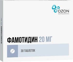 Главная » Аптека Фамотидин-Озон Таблетки 20 мг 30 шт Просмотров 3 Таблетки круглые, двояковыпуклой формы, покрытые пленочной оболочкой желтого цвета. На поперечном срезе видны два слоя — ядро и пленочная оболочка. Озон