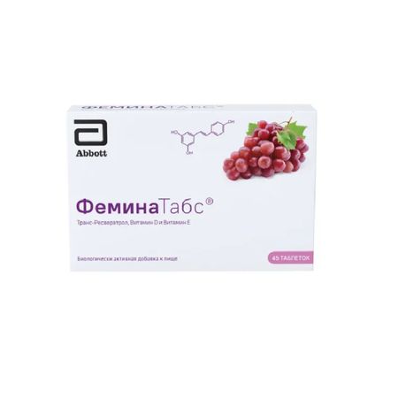 Феминатабс специально разработанная для женщин биологически активная добавка к пище, представляет собой комбинацию транс-ревератрола, витаминов E и D для негормональной поддержки женского здоровья, в том числе в период менопаузы.